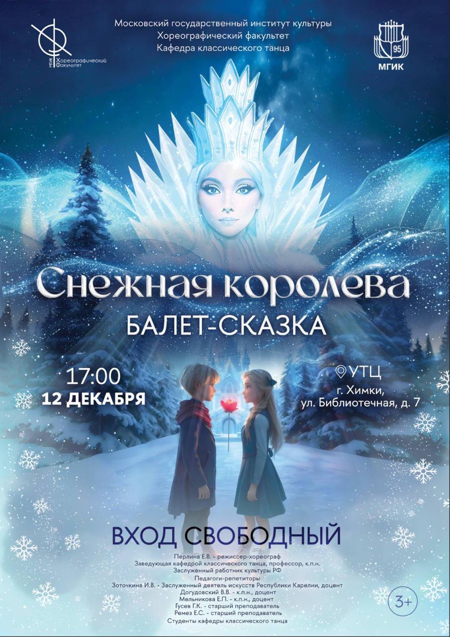 12 декабря в 17:00 состоится Балет-Сказка «Снежная королева». Постановка от наших друзей из Московского государственного института культуры ☺️ вас ждут незабываемые эмоции. Приходите всей семьей 🫶🏼